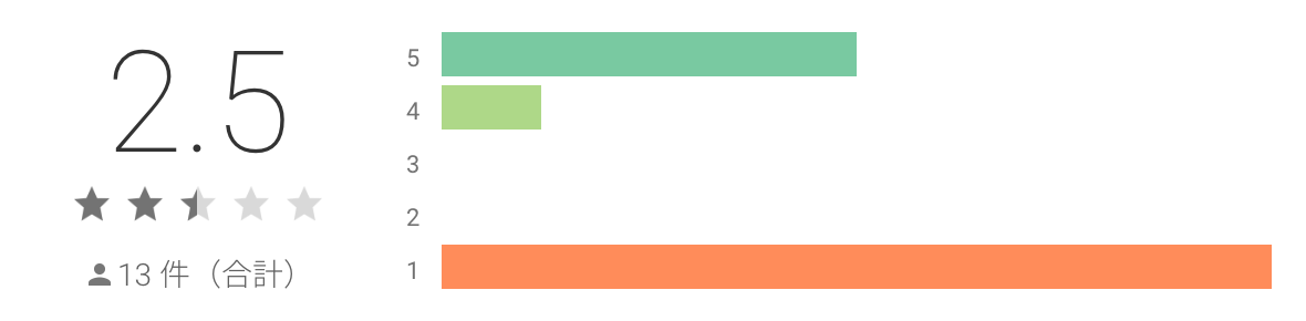 評価件数も少なく、低評価がじわじわと増えていく状態でした。リリース前からお客様の声を聞きながら機能追加・改善をおこなってきた中で、その結果の一つであるストア評価が芳しくない、ということに課題を感じていました。