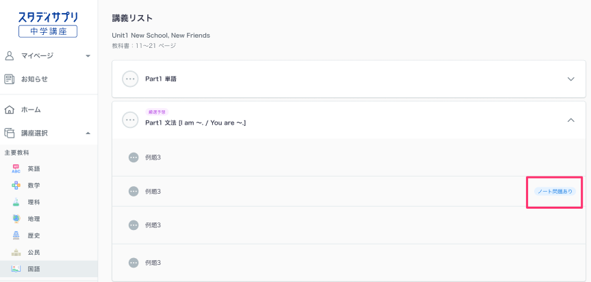 スタディサプリ中学講座では、オンラインのみで回答できる問題ではなく、実際にノートに書き取るタイプの問題も存在します。しかし、その問題タイプであることが実際に問題に取り組むまでわからないため、ユーザがノートを用意していない場合、問題に取り組むことができない課題がありました。そこで、ノートに解く問題であることを事前にユーザに伝えるために、レッスンに「ノートに解く問題」がわかるラベルをつけることにしました。