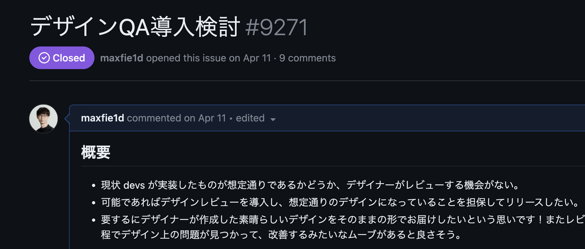 ちなみにデザインQAのようなアイデアは Issue を作ってメンバーと相談しながら検討します。