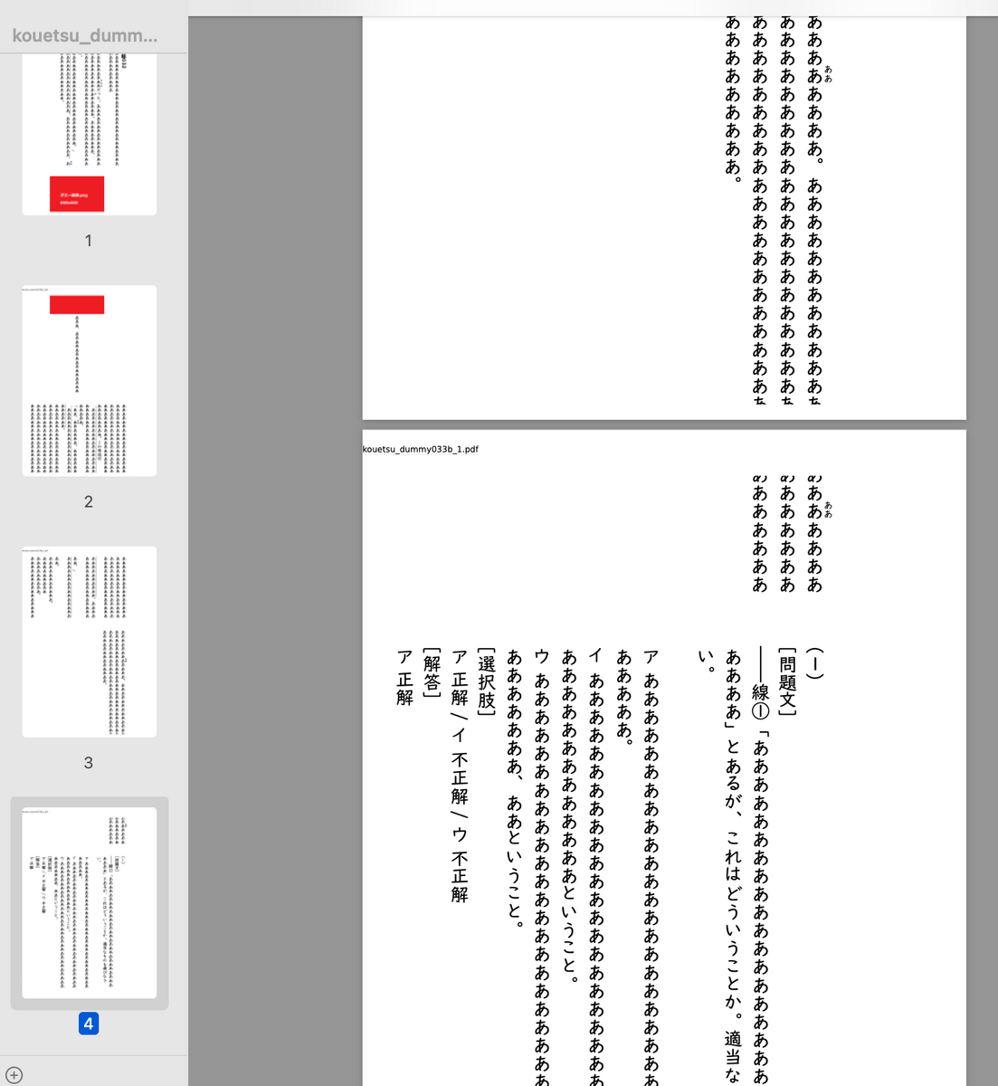 ひとつは、既存の校閲出力システムがいくつか構造上の問題を抱えていたことです。Puppeteer の専用メソッド( [Puppeteer Page.PDF()] ) こそ既に使っていたものの、既存学習画面表示コンポーネントを再利用した最低限の工数でエンハンスしてプレビューのエンドポイントとして振る舞うように実装していたため、特に縦書き(国語)のコンテンツを扱う際に、本来画面では横スクロールになって出るものに問題がありました。